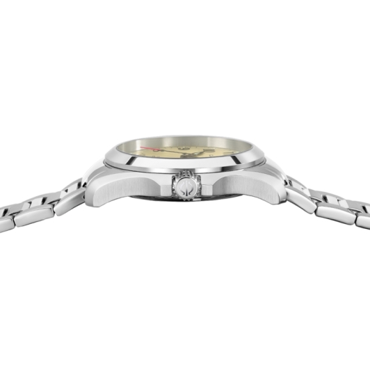 Бежевый циферблат с окошком даты на отметке 3 часа делает часы удобными для повседневного использования. Четкие цифры и стрелки с люминесцентным покрытием обеспечивают отличную видимость даже в условиях низкой освещенности, что позволяет легко считывать время в любое время суток.