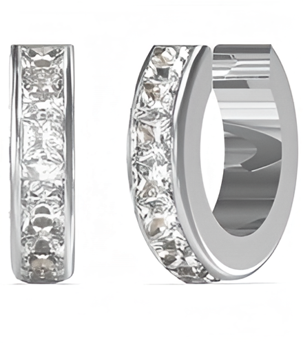 - на передней части каждого кольца расположены квадратные прозрачные кристаллы, инкрустированные в ряд;